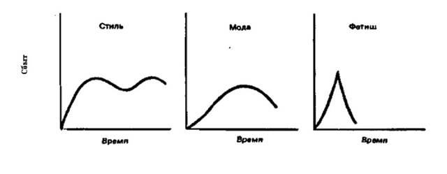 Рис. 3.3 Жизненный цикл стилей, моды и фетиша