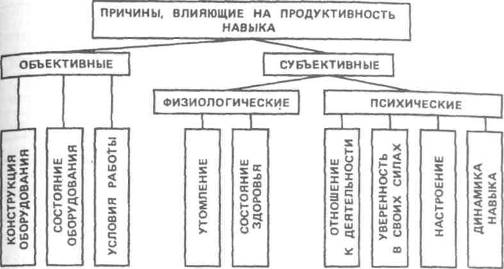Рис. V.9. Схема причин, влияющих на продуктивность навыка