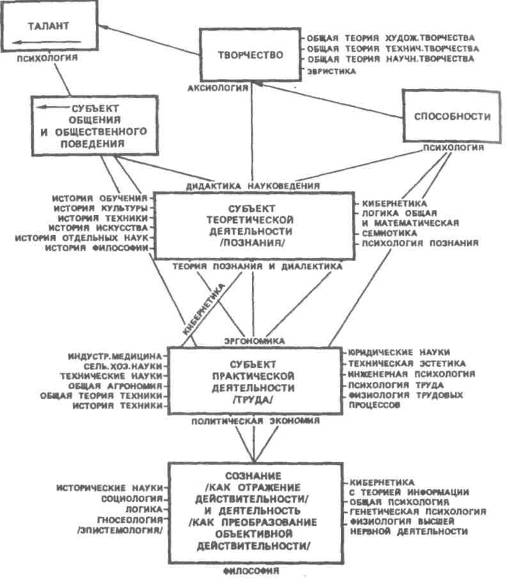 Рис. V.14. Схема классификации основных проблем и наук о человеке как субъекте деятельности