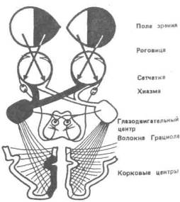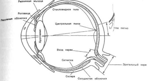 Глаз человека отличается высоким развитием нервных элементов, усовершенствованной оптической системой и разнообразными мышечными устройствами, позволяющими производить поворот глаз и настройку их оптического аппарата.