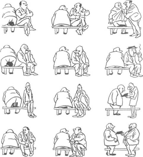 Рис. XIII.l. Типы темперамента: реакции людей с различным темпераментом на смятую шляпу