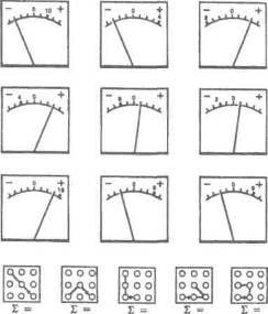Как у вас с вниманием? Задание рис. 1), которое здесь предлагается,— дно из многих испытаний на концен-рацию и переключение внимания ля лиц, готовящихся стать операторами. Итак, надо оценить и просум-шровать показания нескольких рупп стрелочных приборов с учетом нака и цены деления. Какие именно:риборы составляют каждую из групп всего их пять), показывают схемы маршрута» суммирования, помещение внизу. Заметьте, сколько секунд ы затратили на выполнение всего за-ания; подсчитайте количество пра-ильных ответов (они даны ниже). 'еперь рассчитайте коэффициент по-езной работы К, характеризующий спешность выполнения теста: