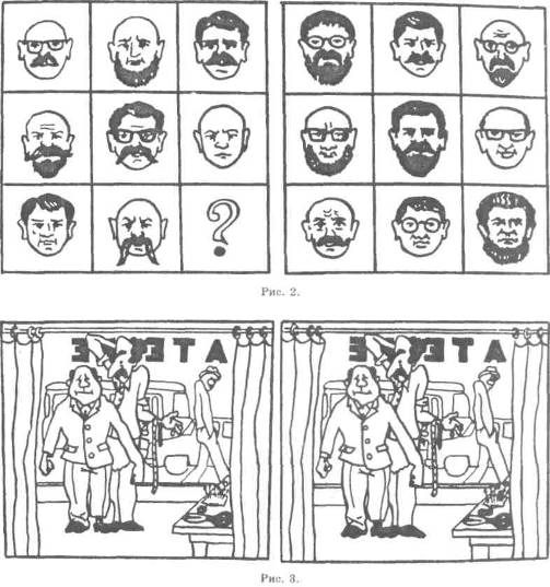 Поиск закономерностей. В левом квадрате (рис. 2) в определенном порядке помещены восемь физиономий. Найдите закономерность, по которой они расположены, и определите, какое