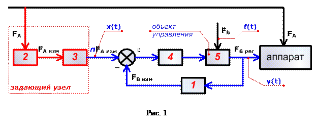 Структурная схема САУ управления соотношением расходов по отклонению показана на рис. 19. В качестве задающего узла, формирующего задающее воздействие x (t) в зависимости от ведущего расхода FА, изменяющегося случайным образом, выступают ТСА 2 и 3. Величина рассогласования, вычисляемая по цепи обратной связи, равна: