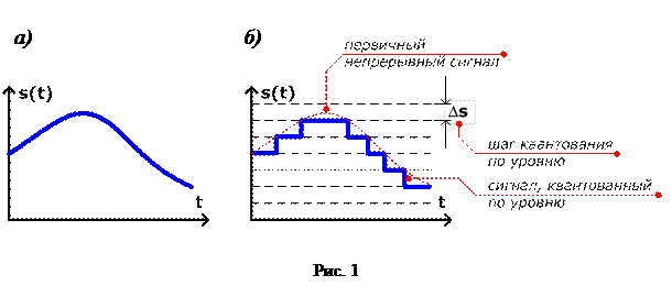 В цифровых САУ используется дискретное преобразование первичного непрерывного сигнала, которое называется квантованием по уровню, и сводится к замене бесконечного числа исходных значений конечным числом уровней (рис. 21– б). Разность уровней называется шагом квантования по уровню D s. Пока значение исходного непрерывного сигнала не изменится на величину, равную шагу квантования, преобразователь фиксирует предыдущее значение уровня. Разрядность современных цифровых устройств позволяет использование столь малых значений шага квантования по уровню, что погрешности такого представления становятся пренебрежимо малыми. После квантования цифровой сигнал подвергается кодированию – значение каждой величины уровня выражается цифровым кодом (числом). В цифровых САУ соответствующую форму обычно имеют задающее воздействие x (t), и, после преобразования, сигналы в обратных связях. Цифровой сигнал рассогласования e(t) может быть преобразован в непрерывное управляющее воздействие z (t).
