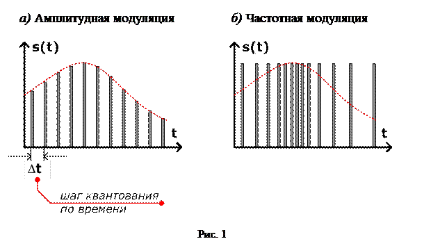 В импульсных САУ используется квантование по времени – замена бесконечного числа значений исходного непрерывного сигнала конечным числом его значений, фиксируемых через определенный промежуток времени D t – шаг квантования по времени (рис. – а). В зависимости от того, какая характеристика последовательности – амплитуда импульсов (см. рис. – а), частота следования импульсов (рис. – б) или ширина импульсов (рис. 23– а) – пропорциональна величине входного сигнала, различают типы модуляции импульсных сигналов.