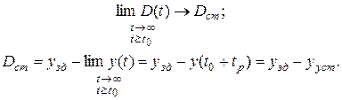 У статических САУ при постоянном задающем воздействии ошибка управления стремиться к постоянному значению, зависящему от величины возмущения, т.е. после завершения переходного процесса имеет место статическая ошибка управления.