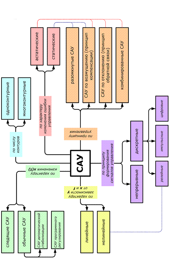 Основным классификационным признаком САУ является используемый для ее построения принцип управления (см. раздел 2.1). При этом существует еще ряд признаков, которые используются для классификации систем управления.