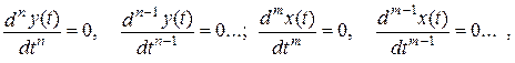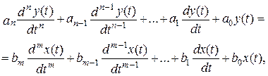 Важно! Обратите внимание на то, что уравнение (3) имеет линейную форму: переменные x (t) и y (t), а также их производные по n -ый и m -ый порядок соответственно, входят в уравнение в первой степени, т.е. не являются аргументами нелинейных функций.