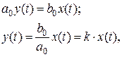 Модель статики звена (системы) получается из модели динамики (3) при x (t)=const и y (t) = const. В этом случае производные входного и выходного параметров равны 0: