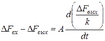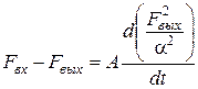 Осуществим вывод модели динамики проточного бака. Целью вывода модели динамики является дифференциальное уравнения вида (1), связывающее входную и выходную величины звена, которыми для проточного бака являются Fвх (t) и Fвых (t). Известным теоретическим описанием процесса функционирования бака является уравнение его материального баланса: