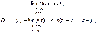 Если САУ является астатической и после завершения переходного процесса обеспечивает строгое равенство выходной величины заданному значению (т.е. отсутствие статической ошибки управления), то: