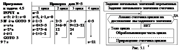 Здесь следует отметить, что нет никакого технически простого способа проверки правильности написанных программ. Для этой цели программисту приходится вручную по тексту программы рассчитывать значения всех переменных и сличать их с желаемыми (известными из условия). Конечно, проверка выполняется не для всей задачи, а только для небольшого числа (например, трех) начальных циклов и при этом тщательно анализируется значение условия выхода из цикла (оператор IF).