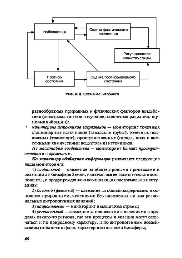 Под мониторингом состояния природной среды подразумевают комплексную систему наблюдений, оценки и прогноза изменении состояния биосферы пли ее отдельных элементов под влиянием антропогенных воздействий,