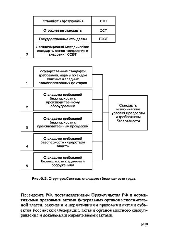 Основным видом нормативных правовых актов по охране труда является Система стандартов безопасности труда [ССБТ) Рос-стандарта. В рамках этой системы производятся взаимная увязка и систематизация всей существующей нормативной и нормативно-технической документации по безопасности труда, в том числе многочисленных норм и правил по технике безопасности и производственной санитарии как общефедерального, так и отраслевого значения.