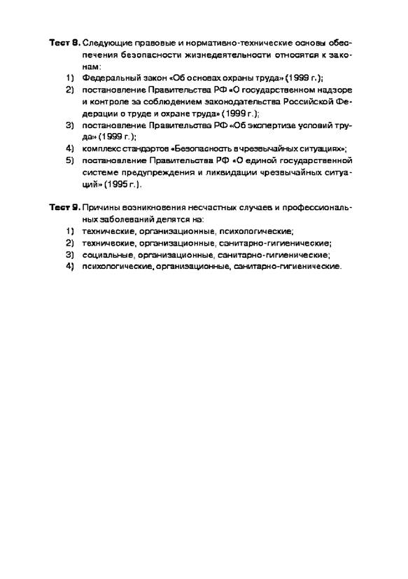 Тест 3. Система стандартов безопасности труда включает в себя: