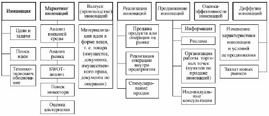 Инновационный процесс - системная организованная совокупность последовательно осуществляемых видов продуктивной деятельности. С точки зрения предметно-результативного содержания видов деятельности инновационный процесс подразделяется на следующие типовые этапы, для каждого из которых характерен специфический набор организационно-технических и экономических операций [20].
