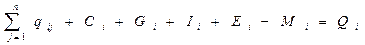 | Промежуточные затраты отрасли (j) … n | I q11q12…q1n q1 q21q22…q2n q2 qn1qn2…qnn qn | II C1 G1 I1 E1 F1 M1 C2 G2 I2 E2 F2 M2 Cn Gn In En Fn Mn | Q1 Q2 Qn | ||||||