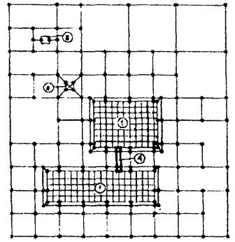 1 - здания; 2 - башня; 3 - оборудование; 4 - кабельный лоток
