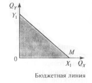 где Рх и РY — цена товара Х и Y; Qx и QY— количества товаров X и Y; М — располагаемый доход потребителя. Это условие означает, что сумма затрат на все блага не превышает дохода потребителя.
