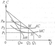 В условиях невмешательства государства монополия будет производить количество продукции Qm и назначать цену Р. Теперь предположим, что государство, как регулирующий орган, устанавливает для монополии максимальную цену, равную предельным издержкам (/", = МС).