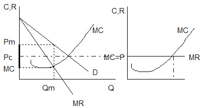 . Соотношение Р и МС при монополии и совершенной конкуренции