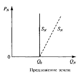 Поскольку количество совокупного предложения земли в каждый момент времени увеличить невозможно, то кривая предложения земли абсолютно неэластична. Это означает, что предложение земли не может быть увеличено даже в условиях значительного роста цен на землю. Необходимо, однако, иметь в виду, что в долгосрочном периоде предложение земли может измениться. Например, в результате нерационального природопользования может быть потеряна часть сельскохозяйственных земель.