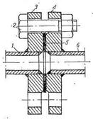 1,6 – трубы; 2 – болт; 3,4 – фланцы; 5 – прокладка