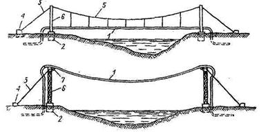 Также надводные переходы выполняют в виде балочных, эстакадных и висячих систем (рис.9.3).