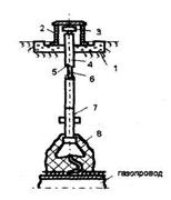 1 –бетонный стакан; 2 –защитный колпак (ковер,); 3 –съемный колпачок; 4 –изолированная часть стального кожуха; 5 –разделительный слой битума внутри кожуха;
