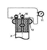 6 –контрольный электропроводник; 7 –неизолированная часть кожуха; 8 –защитный слой битума; 9 – минусовой зажим; 10 –плюсовой зажим; 11 –высокоомный вольтметр; 12 –клеммная головка, надеваемая вместо съемного колпачка при проведении замеров