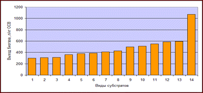 Рис. 1.3. Выход биогаза из различных видов субстратов.