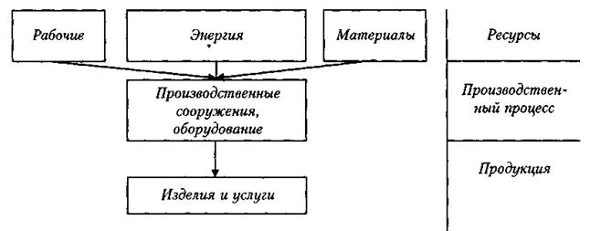Любое производство можно рассматривать как систему, состоящую из трех компонентов: ресурсов, продукции и производственного процесса. Ядром производства является система "ресурсы - продукция" (input - output).