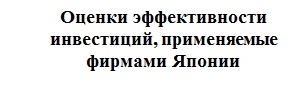 При принятии решений об осуществлении крупных капиталовложений фирмы Японии для оценки эффективности инвестиций пользуются следующими показателями: