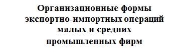 ü Организационные формы экспортно-импортных операций малых и средних промышленных фирм