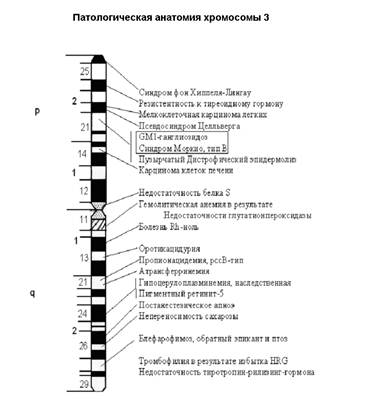 Другие внутриклеточные структуры – пероксисомы – также могут являться точкой приложения первичного действия мутантного гена. В этих случаях возникают так называемые пероксисомные болезни. Описано около 20 нозологических форм. Клинически они проявляются в виде множественных врожденных пороков развития (катаракта, кожные складки на шее, почечные кисты и др.). Различают три типа подобных патологий: 1) генерализованные с измененным числом пероксисом (синдром Целлвегера, церебро-гепаторенальный синдром); 2) с неизмененным числом органоидов и повреждением единстввенной биохимической функции (болезнь Рефсума – накопление фитановой кислоты из-за недостаточности синтеза плазмалогенов в пероксисомах клеток разных органов). Мембраны как структуры клеток также могут быть ключевыми элементами патогенеза генных болезней. Например, отсутствие на поверхности плазмолеммы, специфических рецепторов, связывающих липопротеиды низкой плотности, приводят к семейной гиперхолестеринемии, одна из форм витамин-Д-резистентного рахита обусловлена дефектом рецепторов 1,25-дигидроксихолекальцеферола.