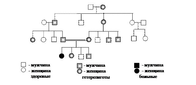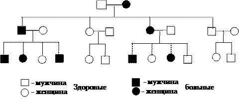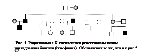 Рис. 5. Родословная с аутосомно-рецессивным типом наследования болезни