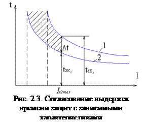 На рис. 2.2 t1 и t2 – времена действия двух смежных защит (1 и 2), разность