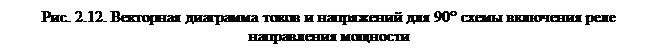, подведенным к реле в симметричном 3-х фазном режиме, при условии что токи в фазах совпадают с одноименными фазными напряжениями. Векторная диаграмма при 900 схеме показана на рис. 2.12. Исследования показали что 90 – градусная схема оказывается наиболее выгодной для реле направления мощности с углом α от 30 до 600, оптимальные условия при α=450; 30 – градусная схема может использоваться для реле косинусного типа.