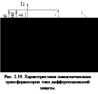 , которые для любых двух трансформаторов тока (TAI, TAII) не равны, вследствии не идентичности их характеристик намагничивания (см. рис. 2.19). С увеличением первичного тока разница в токах намагничивания, а следовательно и ток небаланса возрастает. Для выбора Iс.р, необходимо знать максимально возможное значение тока небаланса при внешних КЗ. Расчетные методы определения максимального тока небаланса Iн.б. max. расч., основаны на предварительном определении токов намагничивания. Значительная величина тока намагничивания при переходных процессах во вторичных цепях трансформатора тока обусловлена наличием в токе КЗ плохо трансформируемой апериодической составляющей, которая приводит к насыщению сердечника и увеличению тока намагничивания, что ухудшает трансформацию периодической составляющей тока КЗ, следовательно, ток намагничивания еще больше растет. Поэтому максимальный ток небаланса в схеме дифференциальной защиты, имеет место если повреждение возникло в момент, когда апериодическая составляющая наибольшая. Наряду с апериодической составляющей на величину токов намагничивания сильно влияет величина и знак остаточной индукции сердечника (т. к. остаточная индукция по знаку может совпадать с индукцией от апериодической составляющей тока КЗ), следовательно, ток намагничивания в переходном режиме может сильно возрасти).