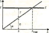 Пусть полная энергия тела равна Е (ее график—прямая, параллельная оси h). На высоте h тело обладает потенциальной энергией П, которая определяется отрезком вертикали, заключенным между точкой h на оси абсцисс и графиком П(h). Естественно, что кинетическая энергия Т задается ординатой между графиком П(h) и горизонтальной прямой ЕЕ. Из рис. 15 следует, что если