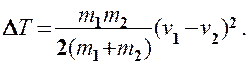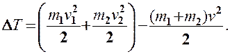 Выясним, как изменяется кинетическая энергия шаров при центральном абсолютно неупругом ударе. Так как в процессе соударения шаров вследствие их деформации происходит «потеря» кинетической энергии (переход в тепловую и другие формы энергии). Эту «потерю» можно определить по разности кинетической энергии тел до и после удара:
