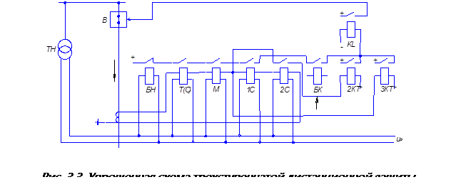 Работу схемы дистанционной защиты рассмотрим на примере упрощенной схемы рис.3.3. Помимо рассмотренных ранее органов, защита имеет в своем составе блокировки (БН, БК), выводящие защиту из действия, в тех случаях, когда защита может срабатывать, при отсутствии повреждений. При исчезновении Uр - Zр=0, таким образом, защита может прийти в действие, но блокировка БН, размыкает свои контакты, тем самым снимает оперативный ток с защиты. При качаниях в системе Uр снижается, а Iр повышается, при этом Zр уменьшается. Следовательно, пусковые и дистанционные органы защиты, также могут прийти в действие, в этом режиме блокировка БК, приходит в действие и выводит защиту из работы.