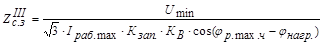 - сопротивление срабатывания третьей зоны; Umin – минимальное рабочее линейное напряжение; Iраб. max – максимальный рабочий ток; КВ – коэффициент возврата реле сопротивления;