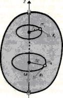 Рассмотрим абсолютно твердое тело (см. § 1), вращающееся около неподвижной оси z, проходящей через него (рис. 24). Мысленно разобьем это тело на маленькие объемы с элементарными массами