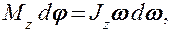 — момент силы относительно оси z. Таким образом, работа при вращении тела равна произведению момента действующей силы на угол поворота.