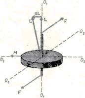 совпадает с новым направлением оси вращения гироскопа. Таким образом, ось вращения гироскопа повернется вокруг прямой О3 О3. Если время действия силы мало, то, хотя момент сил