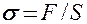 Сила, действующая на единицу площади поперечного сечения, называется напряжением: