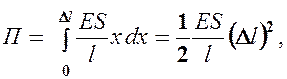 Вычислим потенциальную энергию упругорастянутого (сжатого) стержня, которая равна работе, совершаемой внешними силами при деформации: