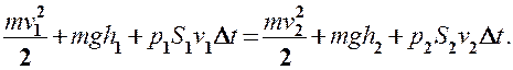 настолько малы, что всем точкам объемов, закрашенных на рис. 47, приписывают постоянные значения скорости v, давления р и высоты h. Следовательно,